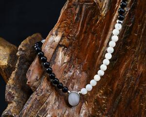 Reversible Onyx & Mother of Pearl Sterling Silver Beaded Neck...
