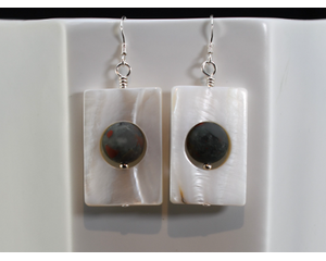 Shell & African Bloodstone Sterling Silver Statement Dangle E...