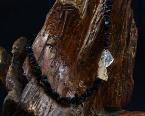 Modern Asymmetrical Obsidian Chip & Raw Citrine Nugget Neckla...