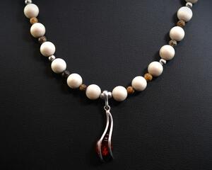 Mid-Century Modern Amber, Fossil Jasper and Sterling Silver N...