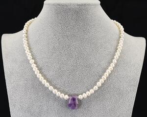 Modern String of Pearls with Floating Faceted Amethyst Focal ...