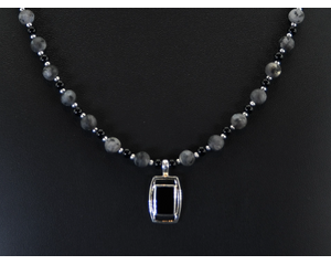 Modernist Onyx Pendant with Larvikite, Sterling Silver, and O...