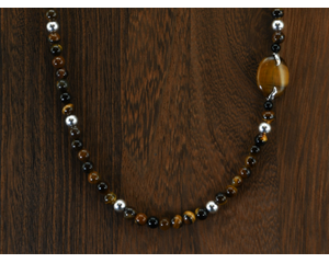 Modernist Natural Tiger Eye Stone and Sterling Silver Beaded ...