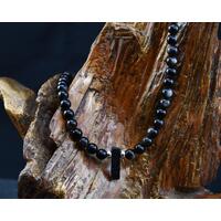 The Yooperlite, onyx, silver sheen obsidian, lava stone, and sterling silver beads are strung on premium beading wire with a sterling silver lobster claw clasp (marked 925) and findings. It is a graduated, weighted design with beads ranging between 4mm and 10mm in diameter. The dark, neutral tones will match almost anything and look great dressed up or down. It is custom crafted by hand for you, allowing you to choose your desired length.
